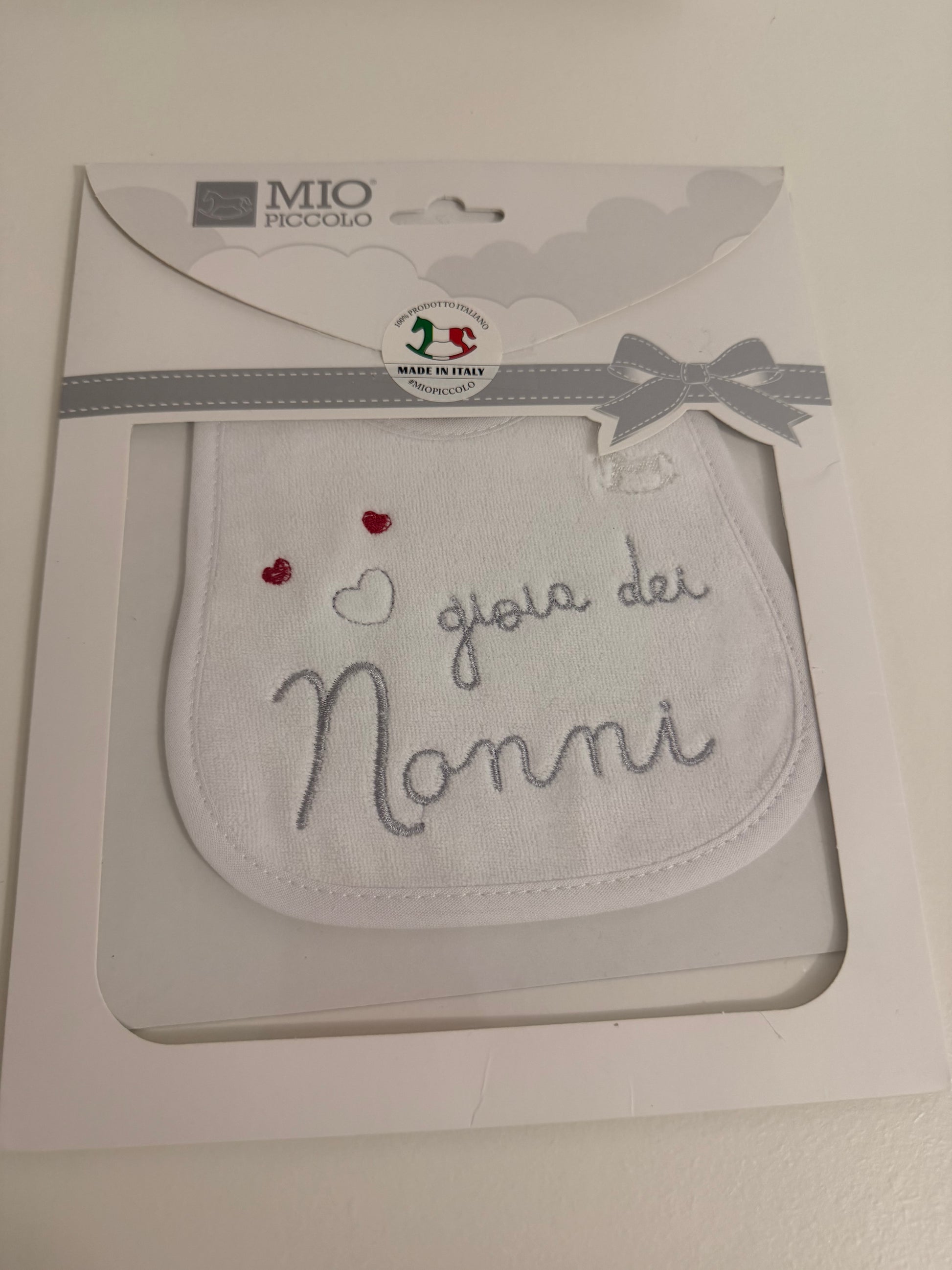 Bavetta in cotone ricamata con scritta gioia dei nonni.