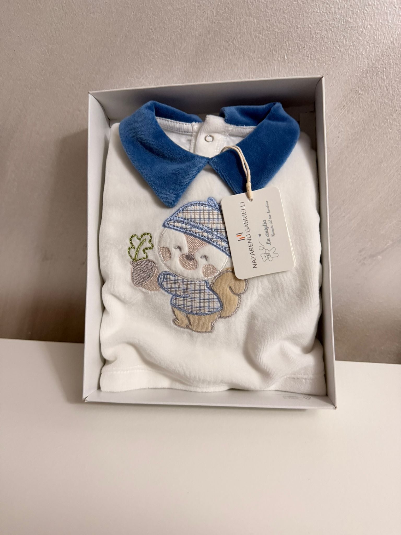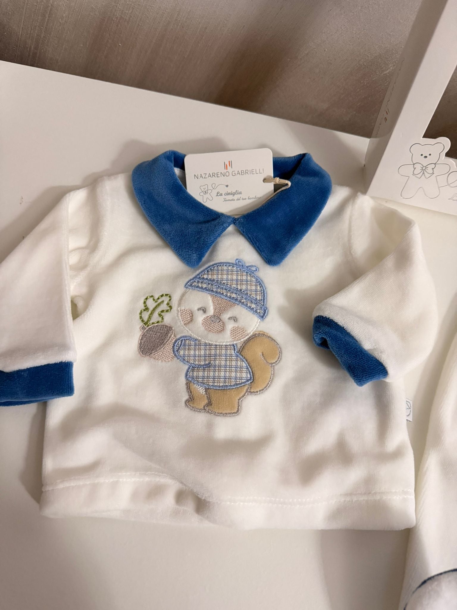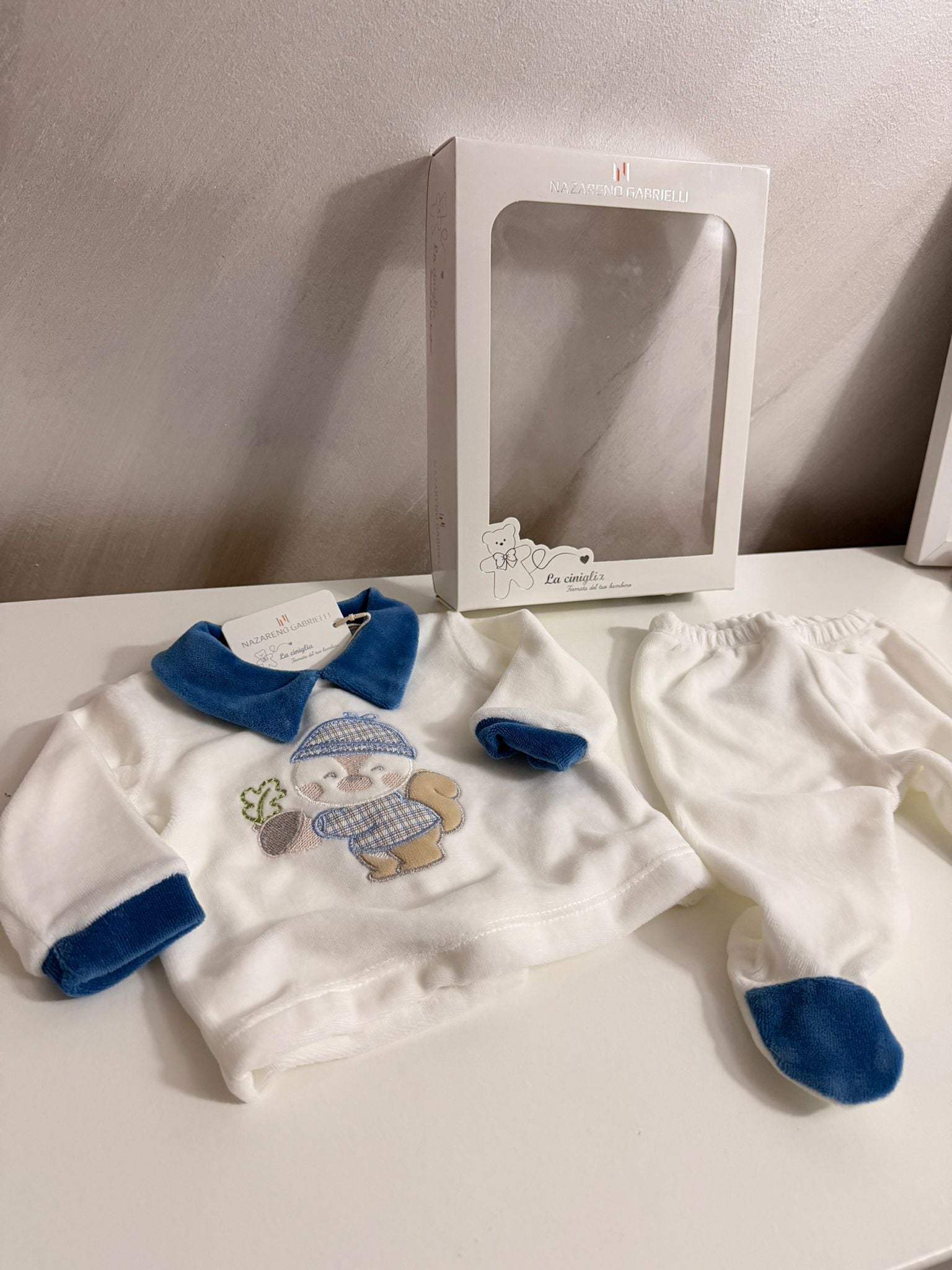 Tutina Nazareno Gabrielli in ciniglia taglia 0\1 mesi. Panna e blu